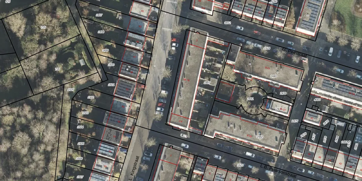 Het perceel waarop M.L. Kingstraat 60 staat heeft een oppervlakte van 1289 m². Dit is een zeer groot perceel. De perceeloppervlakte wordt geregistreerd door het Kadaster. Gedetailleerde informatie over de maten van dit perceel kunt u vinden in het rapport Kadastrale kaart met maatvoering van M.L. Kingstraat 60.
