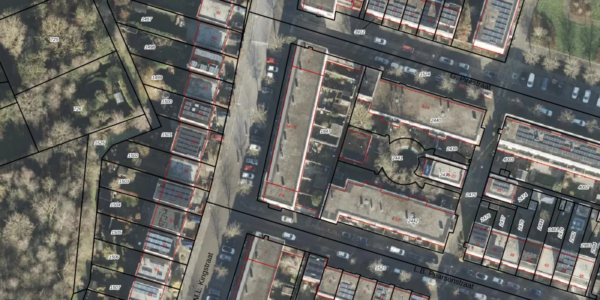 Het perceel waarop M.L. Kingstraat 76 staat heeft een oppervlakte van 1289 m². Dit is een zeer groot perceel. De perceeloppervlakte wordt geregistreerd door het Kadaster. Gedetailleerde informatie over de maten van dit perceel kunt u vinden in het rapport Kadastrale kaart met maatvoering van M.L. Kingstraat 76.