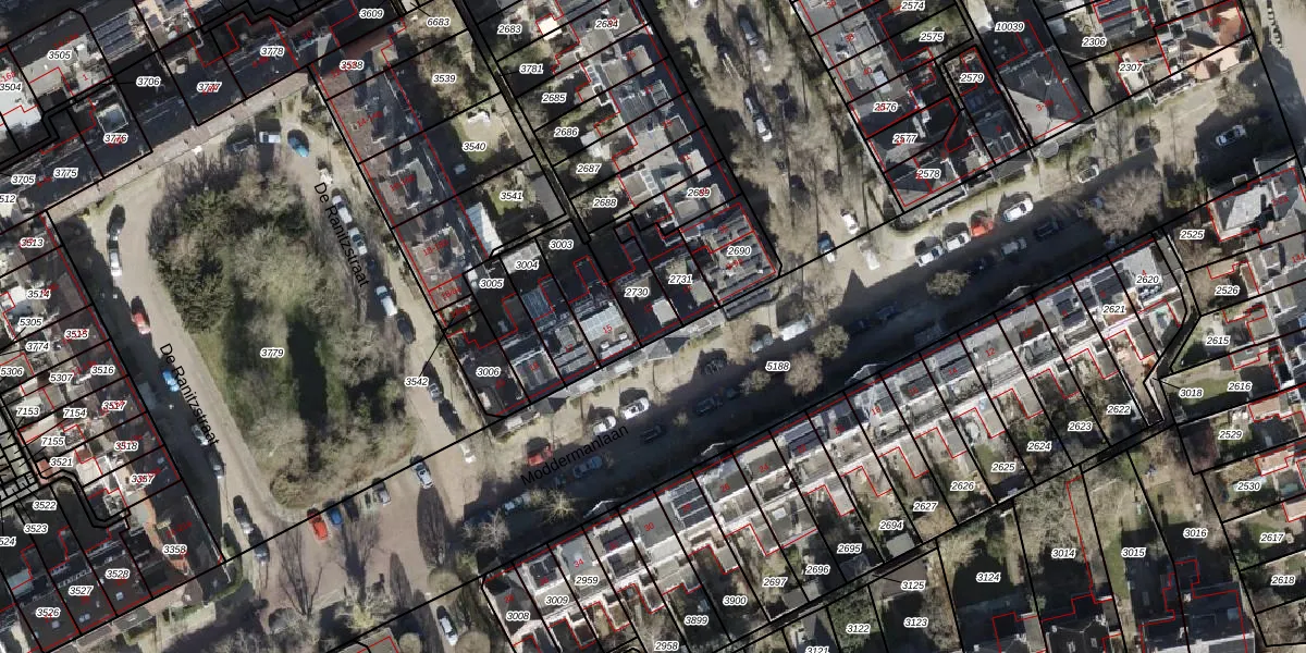 Gebruik de zoekbalk of klik op een perceel voor informatie over de adressen binnen dit perceel.