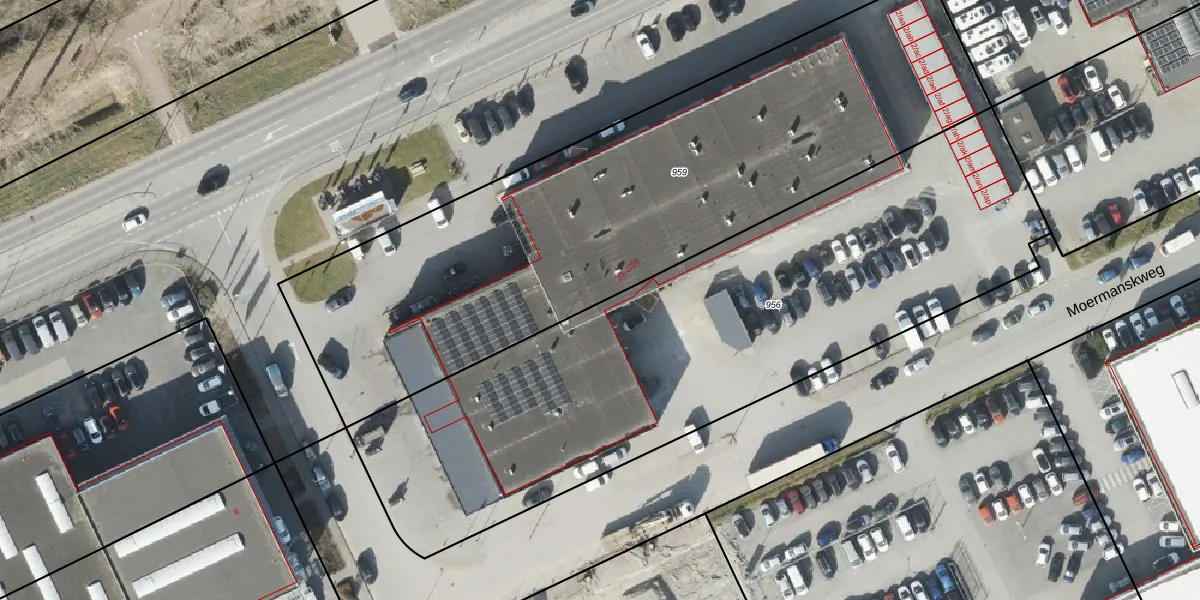 Het perceel waarop Moermanskweg 2-1 staat heeft een oppervlakte van 3062 m². Dit is een zeer groot perceel. De perceeloppervlakte wordt geregistreerd door het Kadaster. Gedetailleerde informatie over de maten van dit perceel kunt u vinden in het rapport Kadastrale kaart met maatvoering van Moermanskweg 2-1.