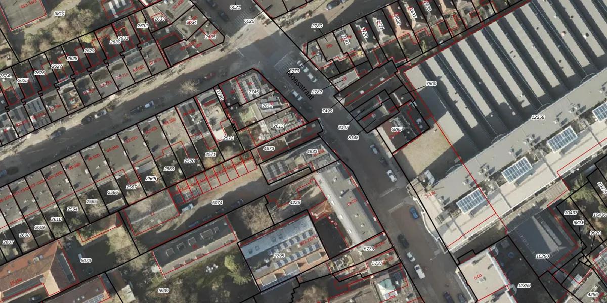 Het perceel waarop het adres ligt is GNG00-D-4633. De afkorting 'GNG00' staat voor kadastrale gemeente Groningen. Het perceel is 192 m² groot. Dat is kleiner dan de gemiddelde perceeloppervlakte in Groningen, dat op 771,11 m² ligt. Het grootste perceel in de kadastrale gemeente is 31,8 ha. Het kleinste perceel heeft een oppervlakte van 0 m². Op het perceel zijn 12 adressen aanwezig. In de Basisregistratie Kadaster (BRK) werden de grenzen van het perceel geregistreerd op 17-01-2011.