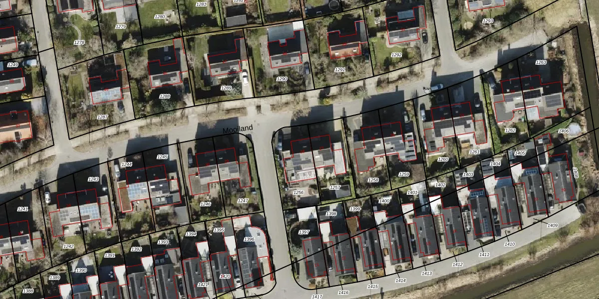 Het perceel waarop Mooiland 28 staat heeft een oppervlakte van 346 m². Dit is een groot perceel. De perceeloppervlakte wordt geregistreerd door het Kadaster. Gedetailleerde informatie over de maten van dit perceel kunt u vinden in het rapport Kadastrale kaart met maatvoering van Mooiland 28.