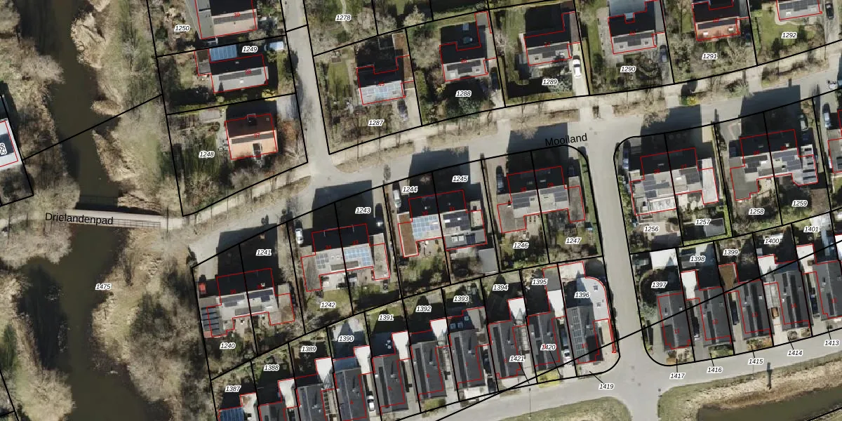 Het perceel waarop Mooiland 32 staat heeft een oppervlakte van 328 m². Dit is een groot perceel. De perceeloppervlakte wordt geregistreerd door het Kadaster. Gedetailleerde informatie over de maten van dit perceel kunt u vinden in het rapport Kadastrale kaart met maatvoering van Mooiland 32.
