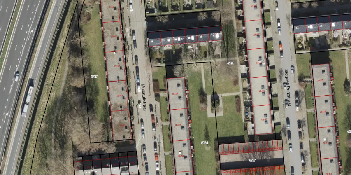 Het perceel waarop Multatulistraat 22 staat heeft een oppervlakte van 2446 m². Dit is een zeer groot perceel. De perceeloppervlakte wordt geregistreerd door het Kadaster. Gedetailleerde informatie over de maten van dit perceel kunt u vinden in het rapport Kadastrale kaart met maatvoering van Multatulistraat 22.