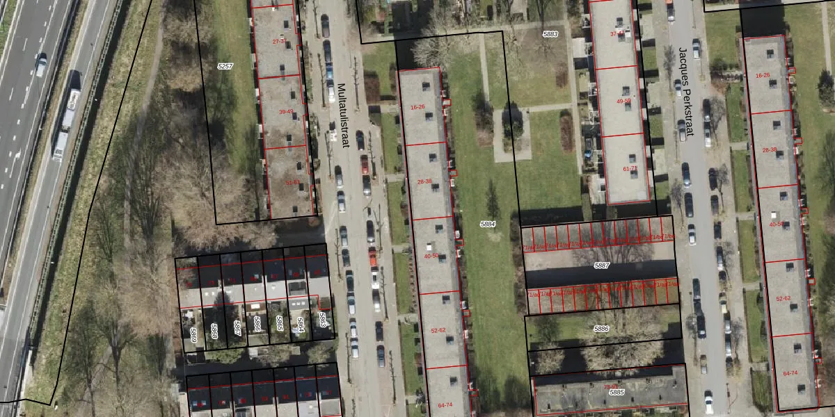 Het perceel waarop Multatulistraat 32 staat heeft een oppervlakte van 2446 m². Dit is een zeer groot perceel. De perceeloppervlakte wordt geregistreerd door het Kadaster. Gedetailleerde informatie over de maten van dit perceel kunt u vinden in het rapport Kadastrale kaart met maatvoering van Multatulistraat 32.