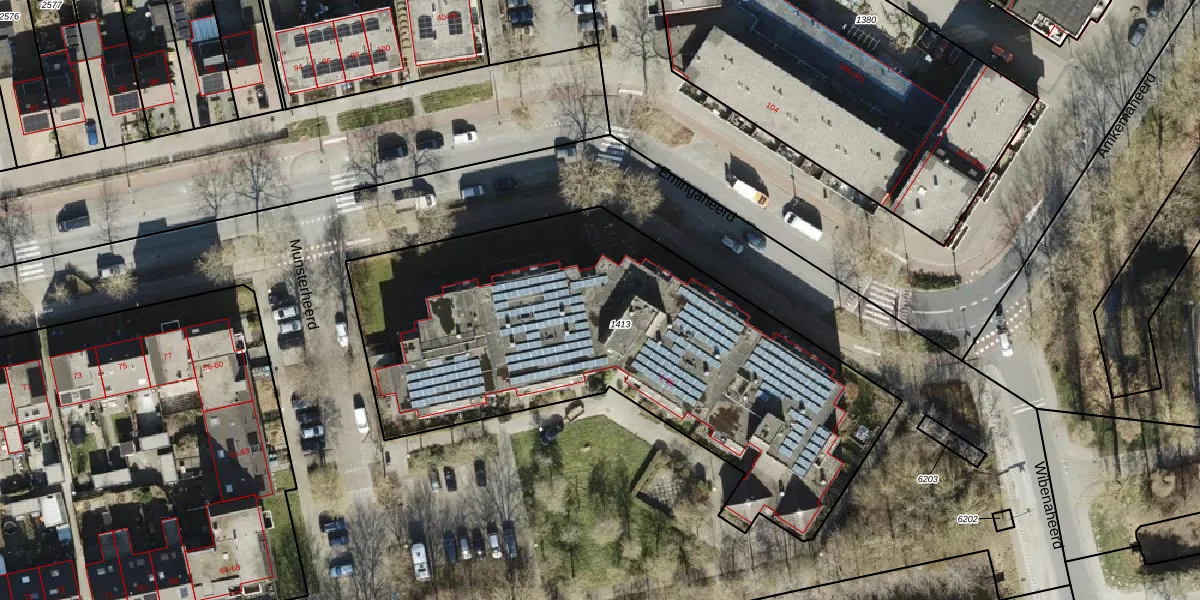 Het perceel waarop Munsterheerd 15 staat heeft een oppervlakte van 2581 m². Dit is een zeer groot perceel. De perceeloppervlakte wordt geregistreerd door het Kadaster. Gedetailleerde informatie over de maten van dit perceel kunt u vinden in het rapport Kadastrale kaart met maatvoering van Munsterheerd 15.