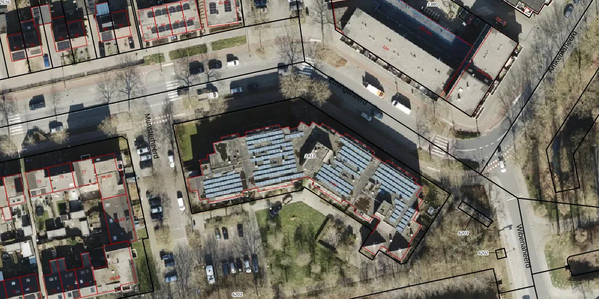 Het perceel waarop Munsterheerd 25 staat heeft een oppervlakte van 2581 m². Dit is een zeer groot perceel. De perceeloppervlakte wordt geregistreerd door het Kadaster. Gedetailleerde informatie over de maten van dit perceel kunt u vinden in het rapport Kadastrale kaart met maatvoering van Munsterheerd 25.