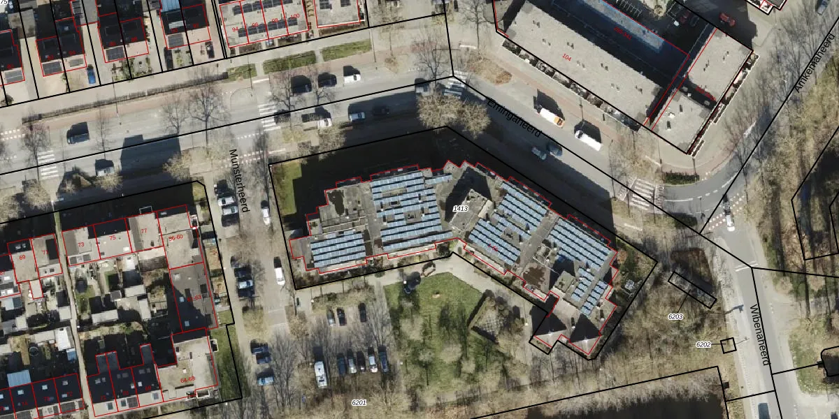 Het perceel waarop Munsterheerd 32 staat heeft een oppervlakte van 2581 m². Dit is een zeer groot perceel. De perceeloppervlakte wordt geregistreerd door het Kadaster. Gedetailleerde informatie over de maten van dit perceel kunt u vinden in het rapport Kadastrale kaart met maatvoering van Munsterheerd 32.