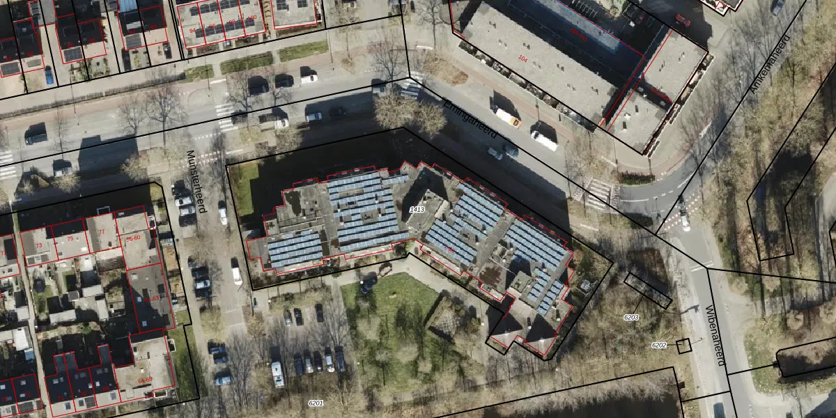 Het perceel waarop Munsterheerd 37 staat heeft een oppervlakte van 2581 m². Dit is een zeer groot perceel. De perceeloppervlakte wordt geregistreerd door het Kadaster. Gedetailleerde informatie over de maten van dit perceel kunt u vinden in het rapport Kadastrale kaart met maatvoering van Munsterheerd 37.