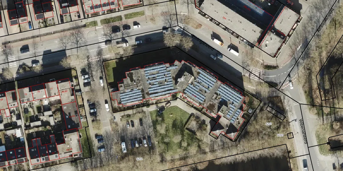 Het adres is gelegen op perceel 1413 in de sectie AB en de kadastrale gemeente Groningen. De kadastrale aanduiding is aldus GNG01-AB-1413. Het perceel is met 2581 m² relatief groot. Het gemiddelde ligt in de kadastrale gemeente Groningen op 2464,69 m². Het kleinste perceel in de kadastrale gemeente is 0 m² groot. De grootste perceeloppervlakte is 1,26 km². Er zijn 55 adressen aanwezig op het perceel. De huidige grenzen van het perceel zijn digitaal in de Basisregistratie Kadaster (BRK) geregistreerd op 09-05-2008.