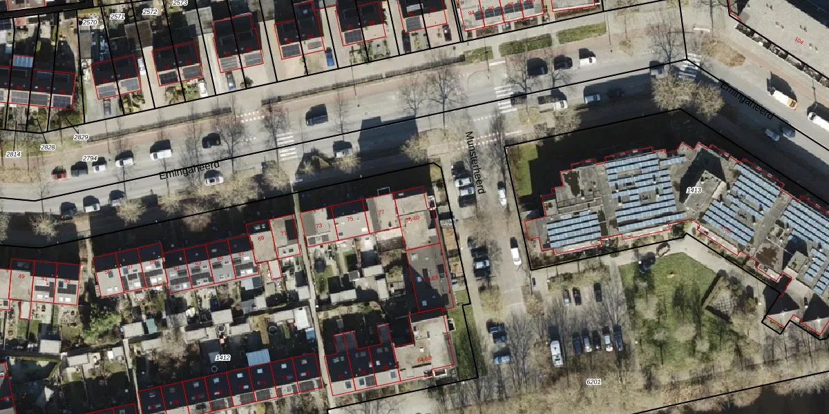 Het perceel waarop het adres ligt is GNG01-AB-1412. De afkorting 'GNG01' staat voor kadastrale gemeente Groningen. Het perceel is met 6506 m² relatief groot. Het gemiddelde ligt in de kadastrale gemeente Groningen op 2464,69 m². De grootste perceeloppervlakte in de kadastrale gemeente is 1,26 km². De kleinste oppervlakte bedraagt 0 m². Op het perceel zijn 51 adressen aanwezig. De laatste wijziging in het de Basisregistratie Kadaster (BRK) was op 09-05-2008.