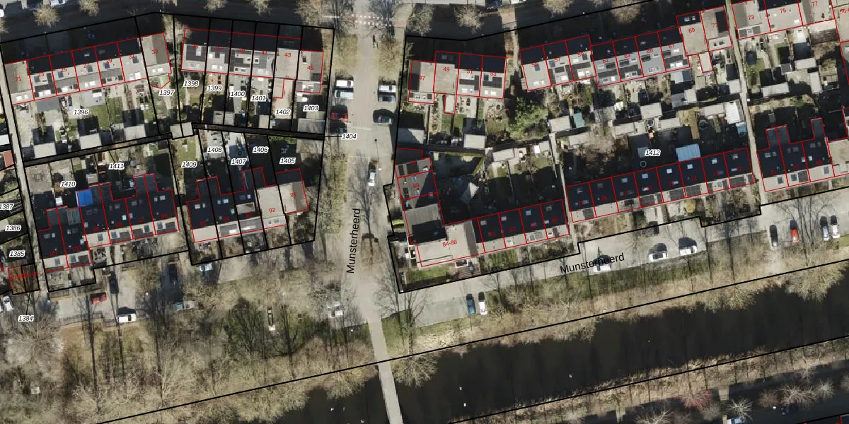 Het perceel waarop Munsterheerd 87 staat heeft een oppervlakte van 6506 m². Dit is een zeer groot perceel. De perceeloppervlakte wordt geregistreerd door het Kadaster. Gedetailleerde informatie over de maten van dit perceel kunt u vinden in het rapport Kadastrale kaart met maatvoering van Munsterheerd 87.