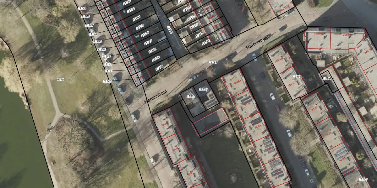 Het perceel waarop Narcisstraat 1 staat heeft een oppervlakte van 118 m². Dit is een middelgroot perceel. De perceeloppervlakte wordt geregistreerd door het Kadaster. Gedetailleerde informatie over de maten van dit perceel kunt u vinden in het rapport Kadastrale kaart met maatvoering van Narcisstraat 1.