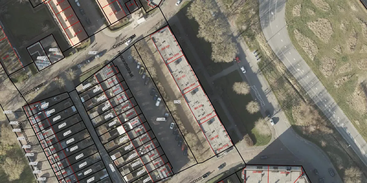 Het perceel waarop Narcisstraat 10-aq staat heeft een oppervlakte van 1638 m². Dit is een zeer groot perceel. De perceeloppervlakte wordt geregistreerd door het Kadaster. Gedetailleerde informatie over de maten van dit perceel kunt u vinden in het rapport Kadastrale kaart met maatvoering van Narcisstraat 10-aq.