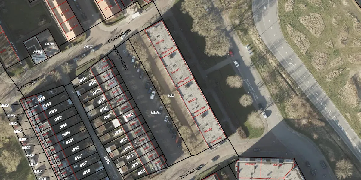 Het perceel waarop Narcisstraat 10-ap staat heeft een oppervlakte van 1638 m². Dit is een zeer groot perceel. De perceeloppervlakte wordt geregistreerd door het Kadaster. Gedetailleerde informatie over de maten van dit perceel kunt u vinden in het rapport Kadastrale kaart met maatvoering van Narcisstraat 10-ap.
