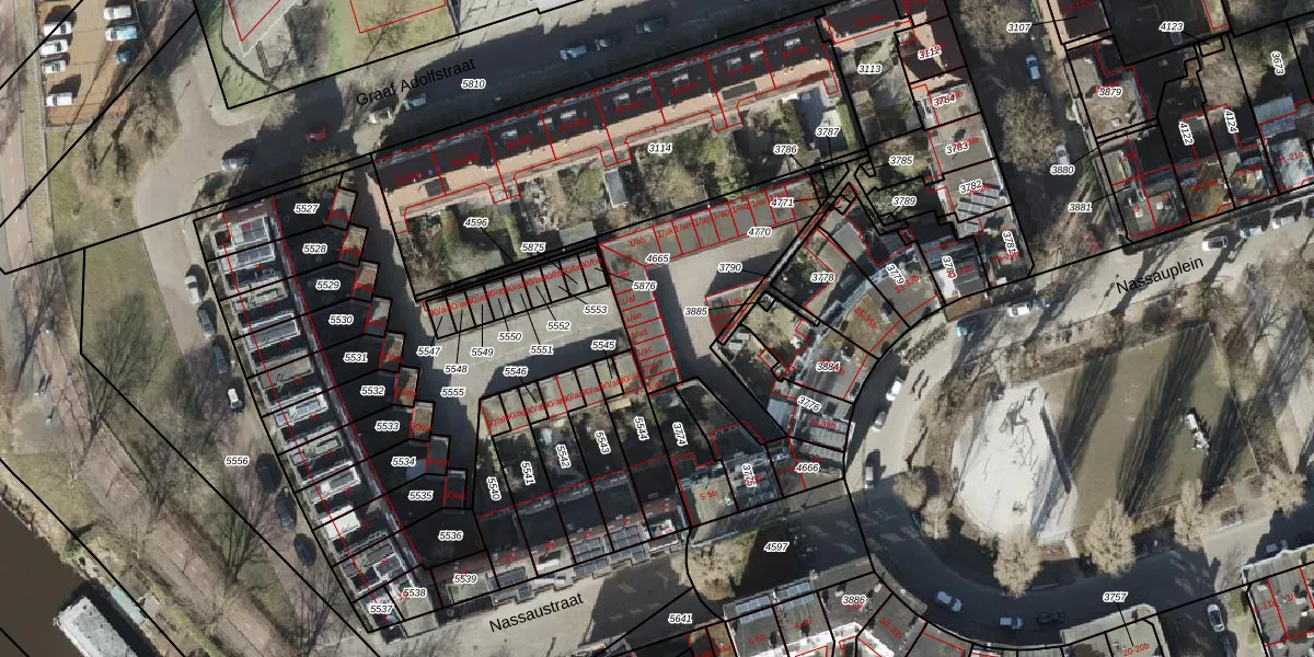 Het perceel waarop Nassaustraat 1-ad staat heeft een oppervlakte van 665 m². Dit is een groot perceel. De perceeloppervlakte wordt geregistreerd door het Kadaster. Gedetailleerde informatie over de maten van dit perceel kunt u vinden in het rapport Kadastrale kaart met maatvoering van Nassaustraat 1-ad.