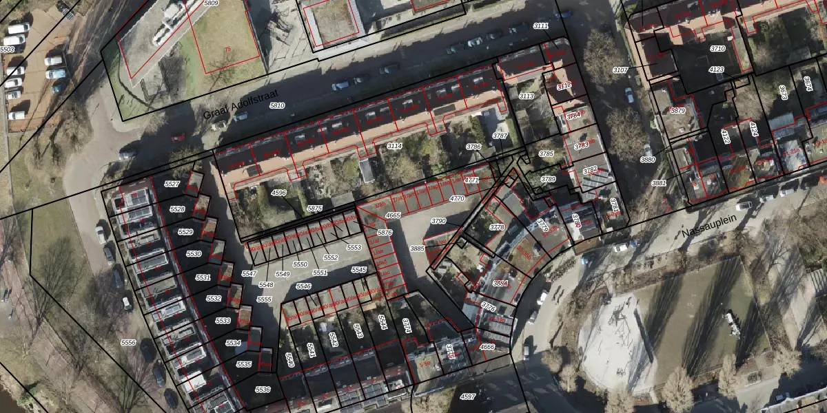 Het perceel waarop Nassaustraat 1-am staat heeft een oppervlakte van 665 m². Dit is een groot perceel. De perceeloppervlakte wordt geregistreerd door het Kadaster. Gedetailleerde informatie over de maten van dit perceel kunt u vinden in het rapport Kadastrale kaart met maatvoering van Nassaustraat 1-am.