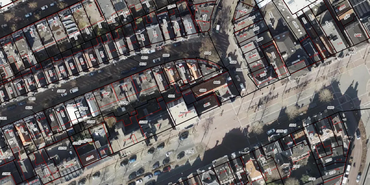 Het adres is gelegen op perceel 5588 in de sectie C en de kadastrale gemeente Groningen. De kadastrale aanduiding is aldus GNG00-C-5588. De gemiddelde perceelgrootte in Groningen is 770,65 m². Dit perceel is kleiner: de perceeloppervlakte bedraagt 48 m². De grootste perceeloppervlakte in de kadastrale gemeente is 31,8 ha. De kleinste oppervlakte bedraagt 0 m². Op het perceel zijn 2 adressen aanwezig. De laatste wijziging in het de Basisregistratie Kadaster (BRK) was op 26-06-2003.