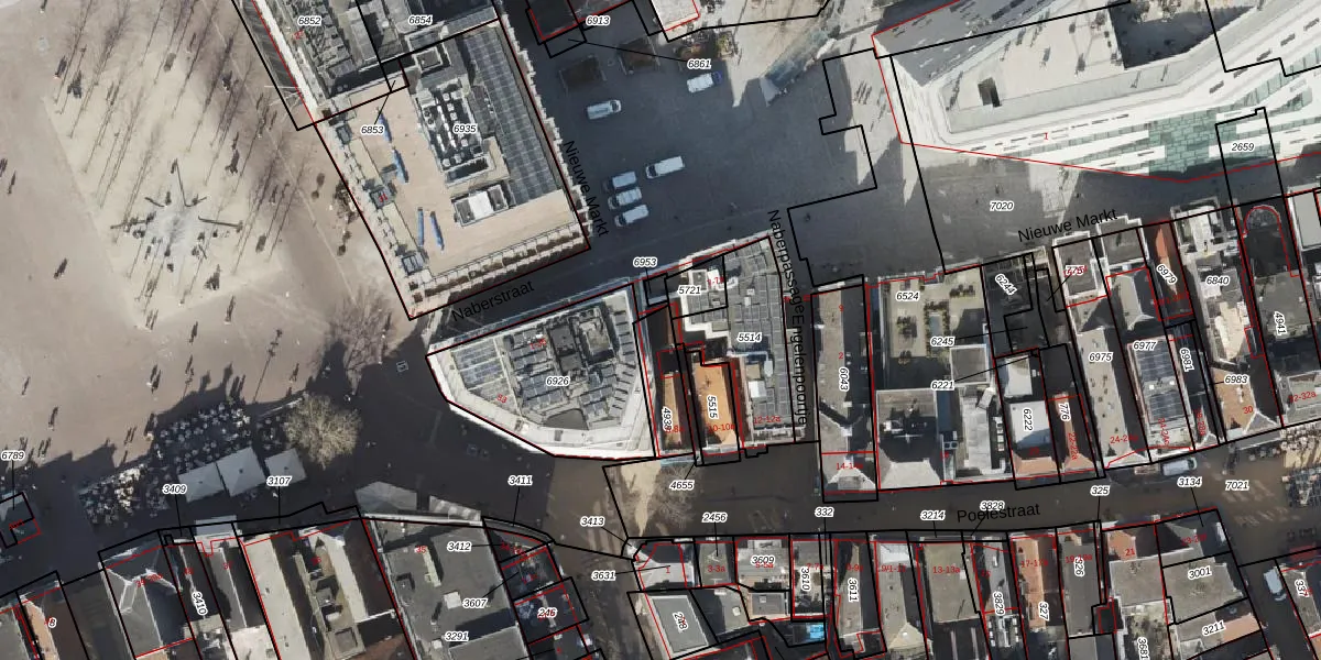 Het perceel waarop Nieuwe Markt 5 staat heeft een oppervlakte van 98 m². Dit is een klein perceel. De perceeloppervlakte wordt geregistreerd door het Kadaster. Gedetailleerde informatie over de maten van dit perceel kunt u vinden in het rapport Kadastrale kaart met maatvoering van Nieuwe Markt 5.