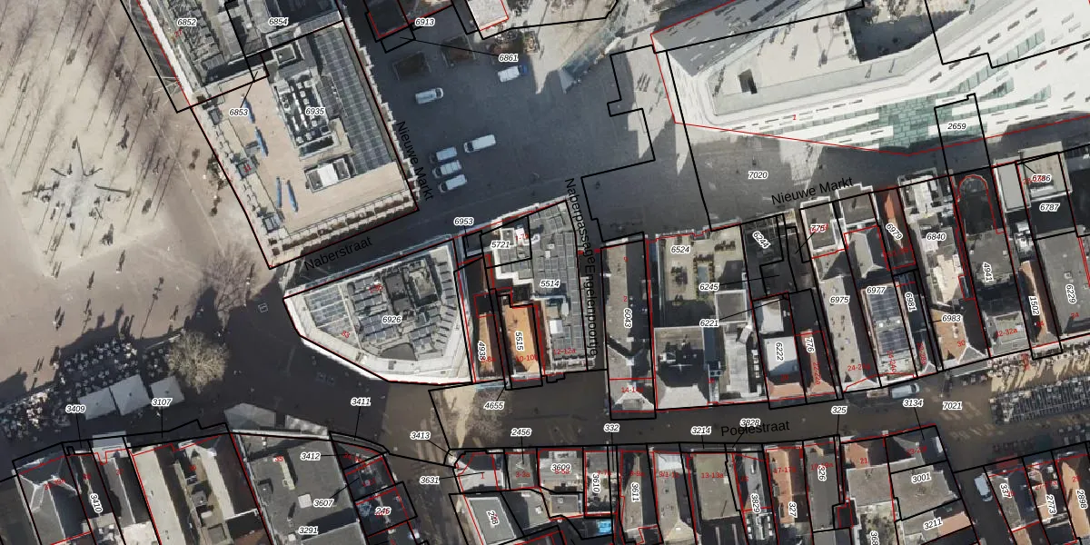 Het perceel waarop Nieuwe Markt 7-f staat heeft een oppervlakte van 269 m². Dit is een middelgroot perceel. De perceeloppervlakte wordt geregistreerd door het Kadaster. Gedetailleerde informatie over de maten van dit perceel kunt u vinden in het rapport Kadastrale kaart met maatvoering van Nieuwe Markt 7-f.