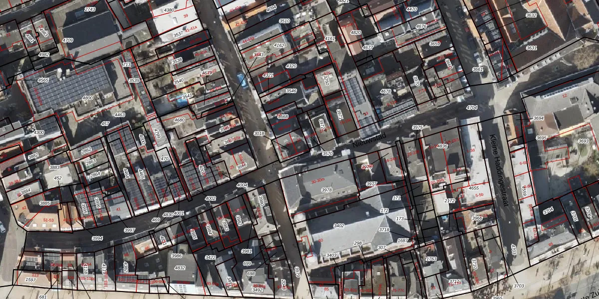 Het perceel waarop Nieuwstad 21 staat heeft een oppervlakte van 80 m². Dit is een klein perceel. De perceeloppervlakte wordt geregistreerd door het Kadaster. Gedetailleerde informatie over de maten van dit perceel kunt u vinden in het rapport Kadastrale kaart met maatvoering van Nieuwstad 21.