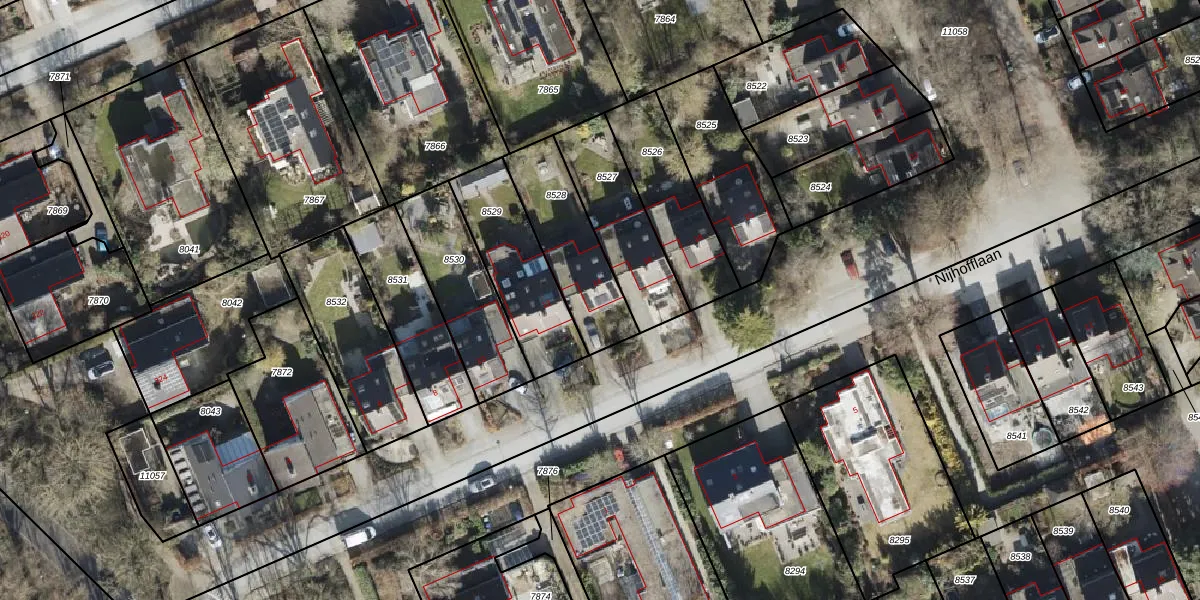 Het perceel waarop Nijhofflaan 14 staat heeft een oppervlakte van 333 m². Dit is een groot perceel. De perceeloppervlakte wordt geregistreerd door het Kadaster. Gedetailleerde informatie over de maten van dit perceel kunt u vinden in het rapport Kadastrale kaart met maatvoering van Nijhofflaan 14.