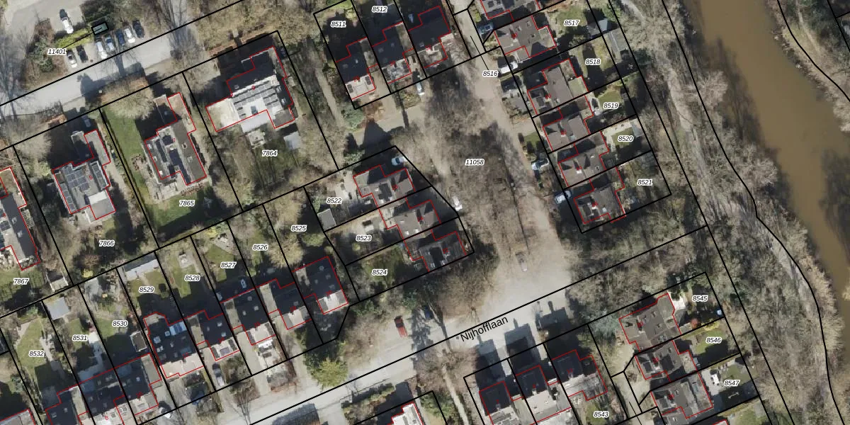 Gebruik de zoekbalk of klik op een perceel voor informatie over de adressen binnen dit perceel.
