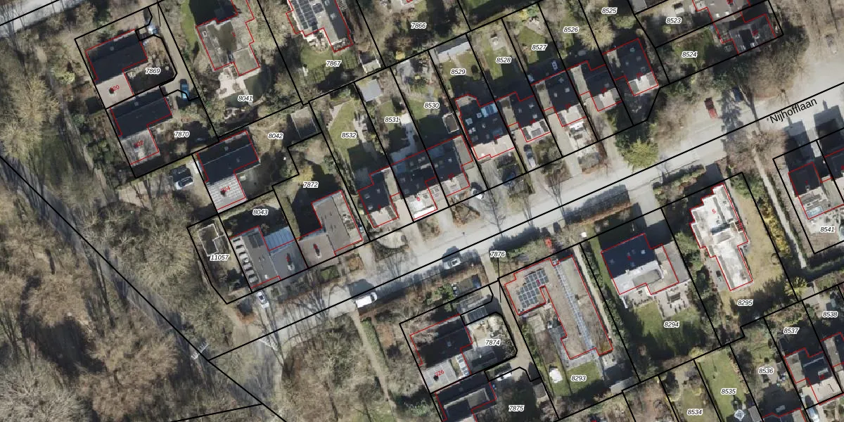Het perceel waarop Nijhofflaan 8 staat heeft een oppervlakte van 333 m². Dit is een groot perceel. De perceeloppervlakte wordt geregistreerd door het Kadaster. Gedetailleerde informatie over de maten van dit perceel kunt u vinden in het rapport Kadastrale kaart met maatvoering van Nijhofflaan 8.