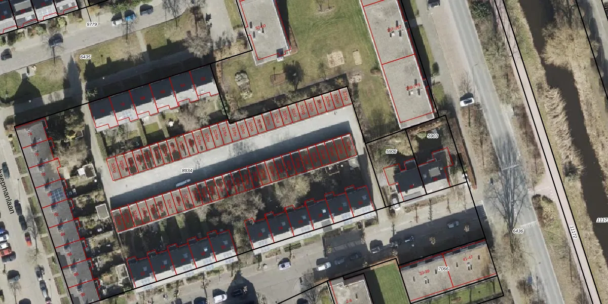Het perceel waarop Nolenslaan 32-af staat heeft een oppervlakte van 5930 m². Dit is een zeer groot perceel. De perceeloppervlakte wordt geregistreerd door het Kadaster. Gedetailleerde informatie over de maten van dit perceel kunt u vinden in het rapport Kadastrale kaart met maatvoering van Nolenslaan 32-af.