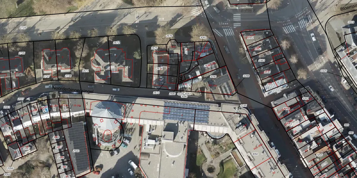 Het perceel waarop Noorderbinnensingel 1 staat heeft een oppervlakte van 45 m². Dit is een klein perceel. De perceeloppervlakte wordt geregistreerd door het Kadaster. Gedetailleerde informatie over de maten van dit perceel kunt u vinden in het rapport Kadastrale kaart met maatvoering van Noorderbinnensingel 1.
