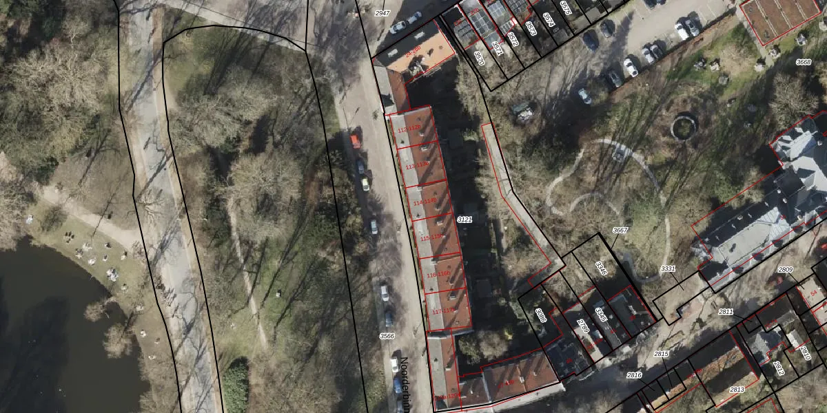 Het perceel waarop Noorderbinnensingel 114-a staat heeft een oppervlakte van 2453 m². Dit is een zeer groot perceel. De perceeloppervlakte wordt geregistreerd door het Kadaster. Gedetailleerde informatie over de maten van dit perceel kunt u vinden in het rapport Kadastrale kaart met maatvoering van Noorderbinnensingel 114-a.