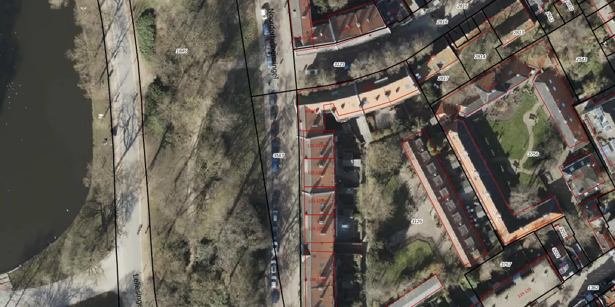 Noorderbinnensingel 121-b is gelegen op kadastraal perceel GNG00E3125. Deze kadastrale aanduiding is uniek en wordt gebruikt door het Kadaster om eigendomsrechten en andere zakelijke rechten vast te leggen. Het perceel maakt onderdeel uit van de kadastrale gemeente Groningen.