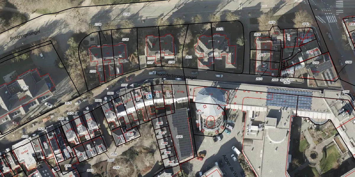 Het perceel waarop Noorderbinnensingel 16 staat heeft een oppervlakte van 480 m². Dit is een groot perceel. De perceeloppervlakte wordt geregistreerd door het Kadaster. Gedetailleerde informatie over de maten van dit perceel kunt u vinden in het rapport Kadastrale kaart met maatvoering van Noorderbinnensingel 16.