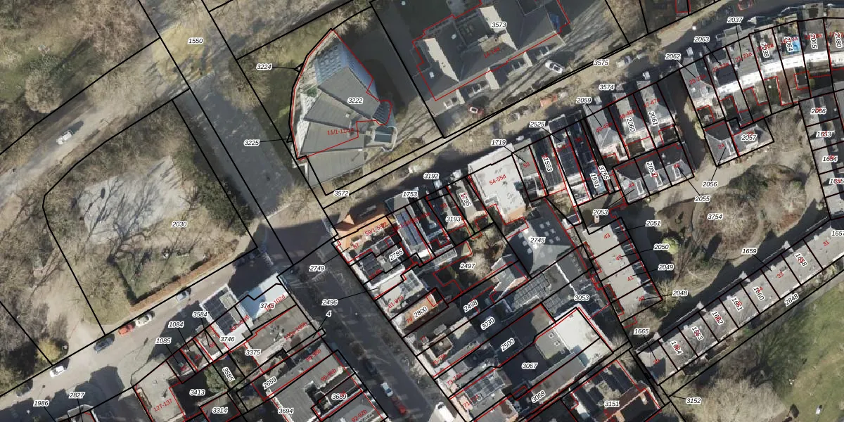 Het adres ligt op het perceel GNG00-F-1753, dat zich in de kadastrale gemeente Groningen bevindt. De gemiddelde perceelgrootte in Groningen is 771,26 m². Dit perceel is kleiner: de perceeloppervlakte bedraagt 77 m². Het grootste perceel in de kadastrale gemeente is 31,8 ha. Het kleinste perceel heeft een oppervlakte van 0 m². Op het perceel zijn 2 adressen aanwezig. De laatste wijziging in het de Basisregistratie Kadaster (BRK) was op 13-06-2003.