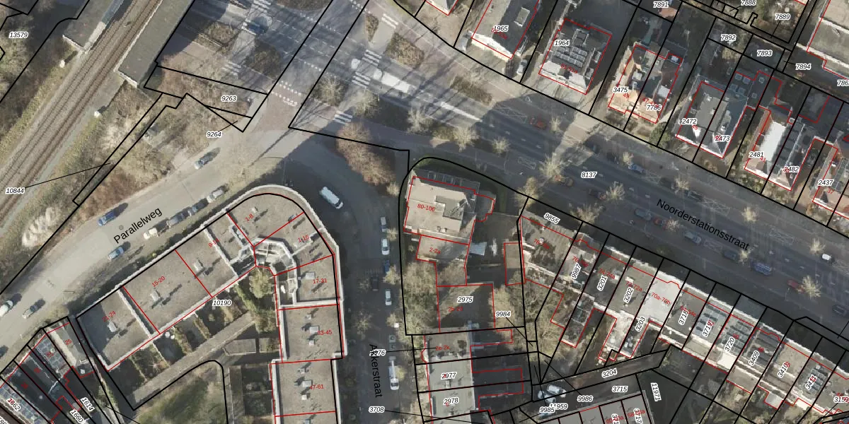 Het perceel waarop Noorderstationsstraat 104 staat heeft een oppervlakte van 1068 m². Dit is een zeer groot perceel. De perceeloppervlakte wordt geregistreerd door het Kadaster. Gedetailleerde informatie over de maten van dit perceel kunt u vinden in het rapport Kadastrale kaart met maatvoering van Noorderstationsstraat 104.