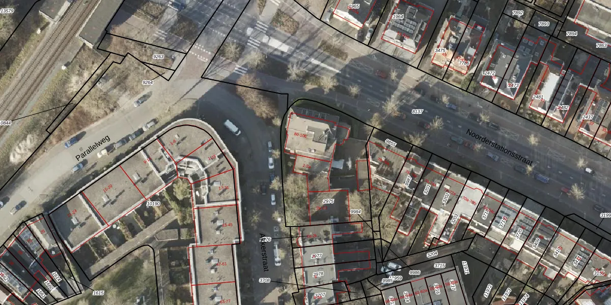 Het perceel waarop Noorderstationsstraat 98 staat heeft een oppervlakte van 1068 m². Dit is een zeer groot perceel. De perceeloppervlakte wordt geregistreerd door het Kadaster. Gedetailleerde informatie over de maten van dit perceel kunt u vinden in het rapport Kadastrale kaart met maatvoering van Noorderstationsstraat 98.