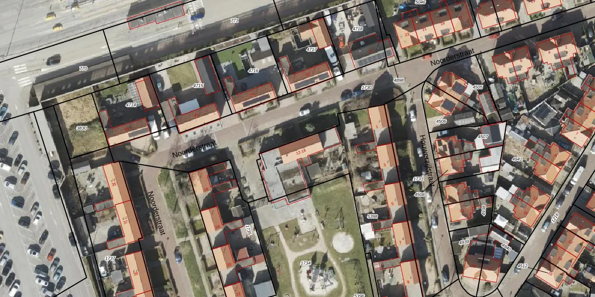 Het perceel waarop Noorderstraat 12 staat heeft een oppervlakte van 1503 m². Dit is een zeer groot perceel. De perceeloppervlakte wordt geregistreerd door het Kadaster. Gedetailleerde informatie over de maten van dit perceel kunt u vinden in het rapport Kadastrale kaart met maatvoering van Noorderstraat 12.