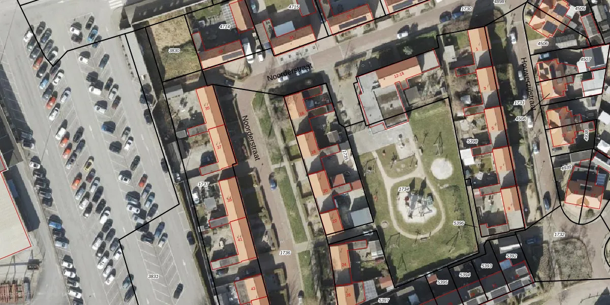 Het perceel waarop Noorderstraat 18 staat heeft een oppervlakte van 730 m². Dit is een groot perceel. De perceeloppervlakte wordt geregistreerd door het Kadaster. Gedetailleerde informatie over de maten van dit perceel kunt u vinden in het rapport Kadastrale kaart met maatvoering van Noorderstraat 18.