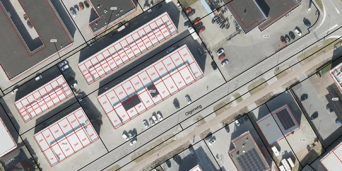 Olgerweg 2-8 is gelegen op kadastraal perceel NDK00D1804. Deze kadastrale aanduiding is uniek en wordt gebruikt door het Kadaster om eigendomsrechten en andere zakelijke rechten vast te leggen. Het perceel maakt onderdeel uit van de kadastrale gemeente Noorddijk.