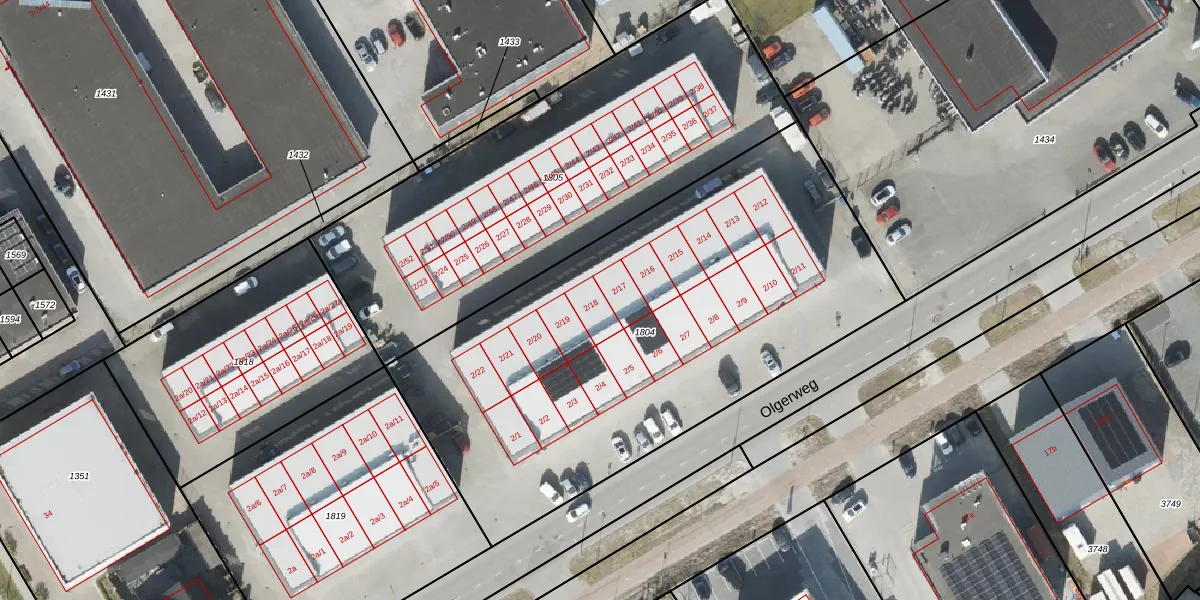 Het perceel waarop Olgerweg 2-18 staat heeft een oppervlakte van 2815 m². Dit is een zeer groot perceel. De perceeloppervlakte wordt geregistreerd door het Kadaster. Gedetailleerde informatie over de maten van dit perceel kunt u vinden in het rapport Kadastrale kaart met maatvoering van Olgerweg 2-18.
