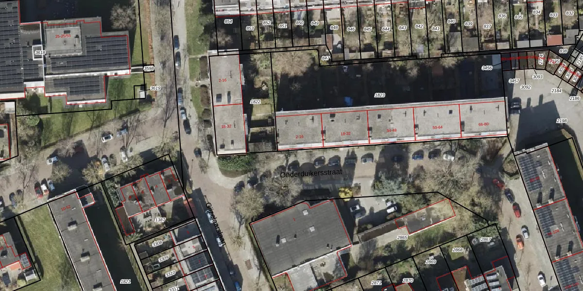 Het perceel waarop Onderduikersstraat 2 staat heeft een oppervlakte van 2326 m². Dit is een zeer groot perceel. De perceeloppervlakte wordt geregistreerd door het Kadaster. Gedetailleerde informatie over de maten van dit perceel kunt u vinden in het rapport Kadastrale kaart met maatvoering van Onderduikersstraat 2.