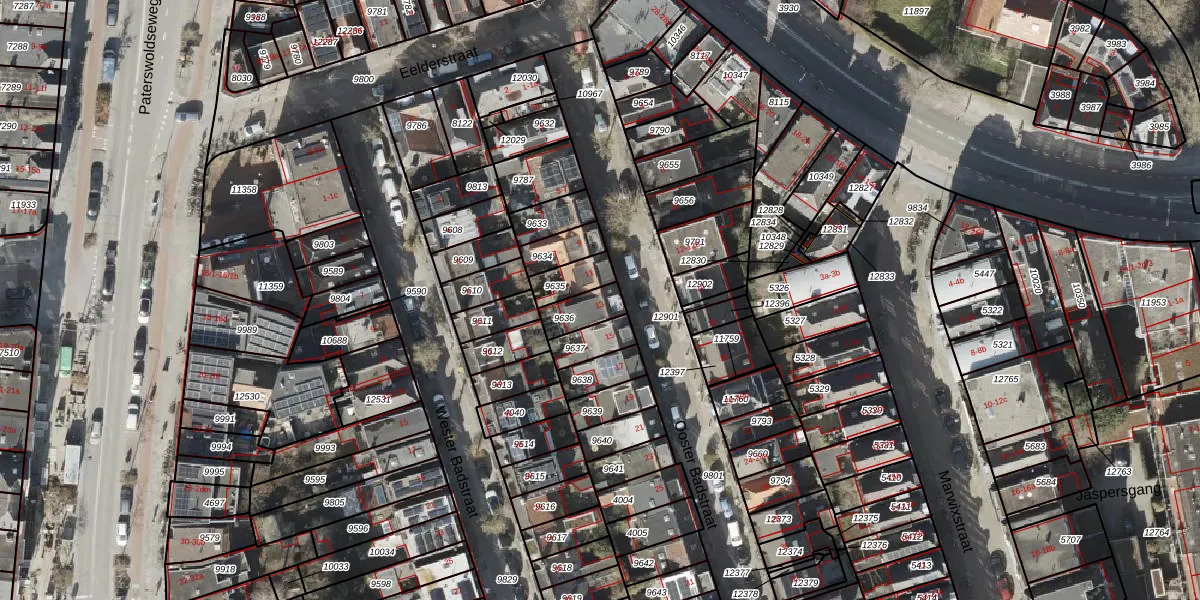 Ooster Badstraat 13 is gelegen op kadastraal perceel GNG00C9636. Deze kadastrale aanduiding is uniek en wordt gebruikt door het Kadaster om eigendomsrechten en andere zakelijke rechten vast te leggen. Het perceel maakt onderdeel uit van de kadastrale gemeente Groningen.