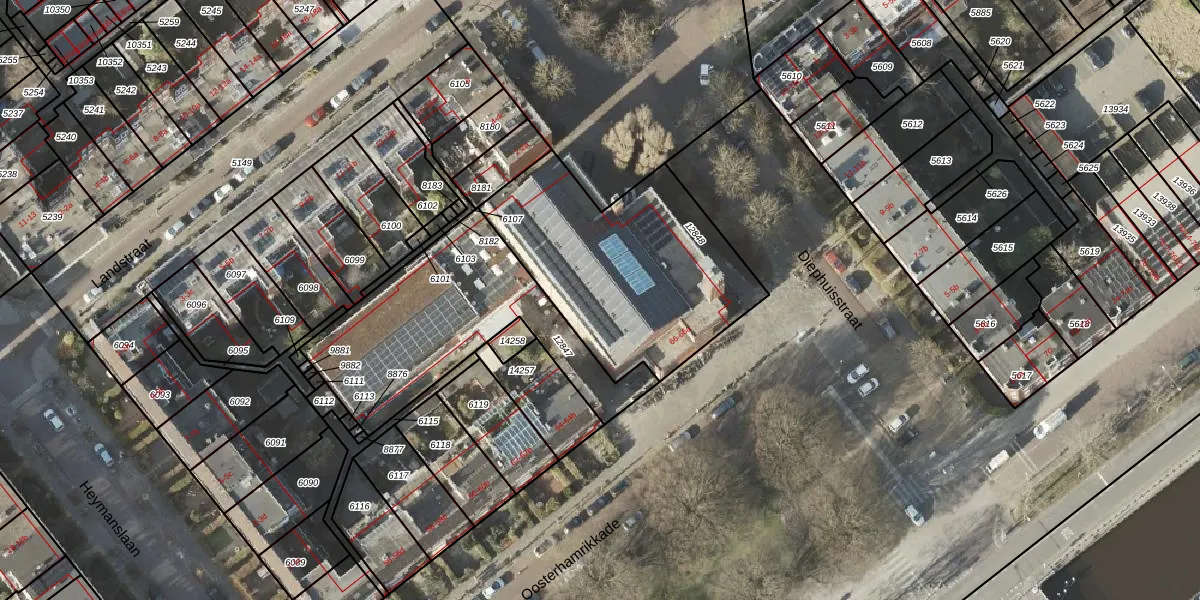 Het perceel waarop Oosterhamrikkade 66-15 staat heeft een oppervlakte van 1023 m². Dit is een zeer groot perceel. De perceeloppervlakte wordt geregistreerd door het Kadaster. Gedetailleerde informatie over de maten van dit perceel kunt u vinden in het rapport Kadastrale kaart met maatvoering van Oosterhamrikkade 66-15.