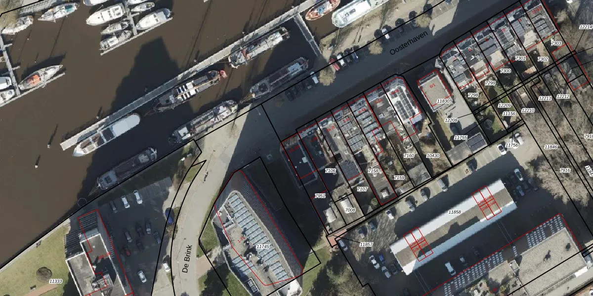Oosterhaven 1-3 is gelegen op kadastraal perceel GNG00B7951. Deze kadastrale aanduiding is uniek en wordt gebruikt door het Kadaster om eigendomsrechten en andere zakelijke rechten vast te leggen. Het perceel maakt onderdeel uit van de kadastrale gemeente Groningen.