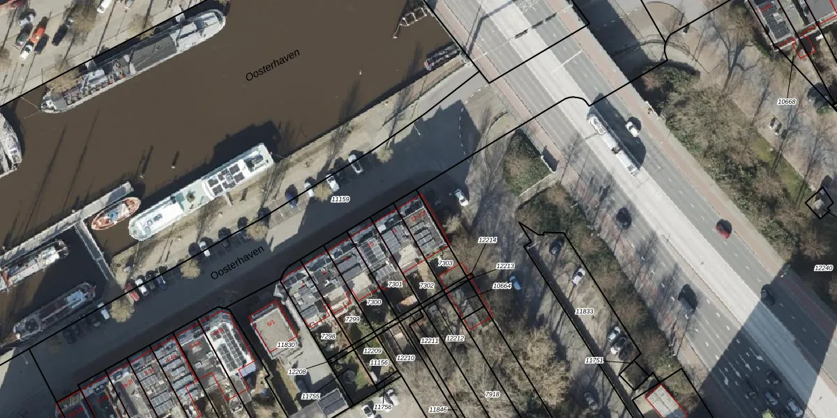 Oosterhaven 12 is gelegen op kadastraal perceel GNG00B7303. Deze kadastrale aanduiding is uniek en wordt gebruikt door het Kadaster om eigendomsrechten en andere zakelijke rechten vast te leggen. Het perceel maakt onderdeel uit van de kadastrale gemeente Groningen.