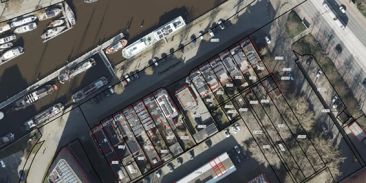 Oosterhaven 6-1 is gelegen op kadastraal perceel GNG00B11830. Deze kadastrale aanduiding is uniek en wordt gebruikt door het Kadaster om eigendomsrechten en andere zakelijke rechten vast te leggen. Het perceel maakt onderdeel uit van de kadastrale gemeente Groningen.