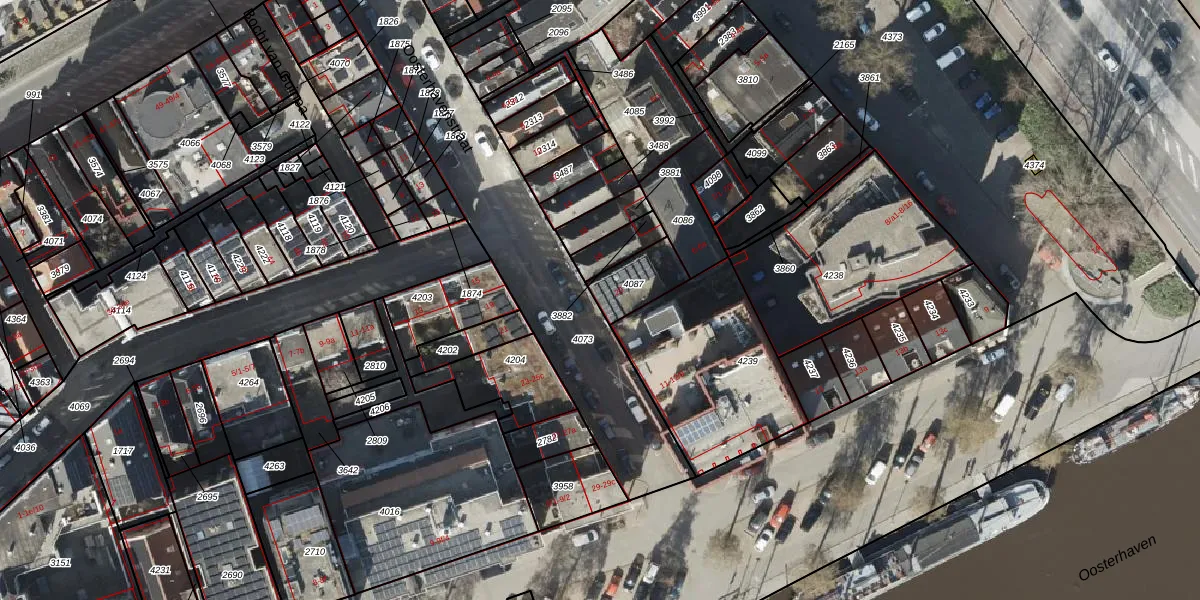 Oosterhavenstraat 20 is gelegen op kadastraal perceel GNG00H4087. Deze kadastrale aanduiding is uniek en wordt gebruikt door het Kadaster om eigendomsrechten en andere zakelijke rechten vast te leggen. Het perceel maakt onderdeel uit van de kadastrale gemeente Groningen.