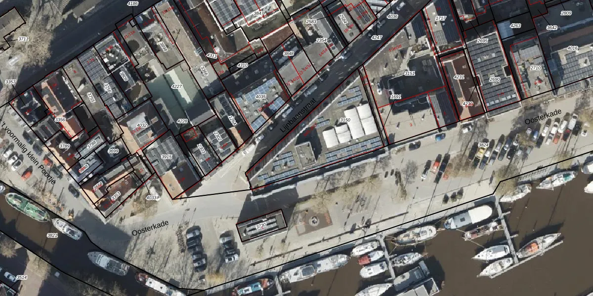 Het perceel waarop Oosterkade 2-d-4 staat heeft een oppervlakte van 784 m². Dit is een groot perceel. De perceeloppervlakte wordt geregistreerd door het Kadaster. Gedetailleerde informatie over de maten van dit perceel kunt u vinden in het rapport Kadastrale kaart met maatvoering van Oosterkade 2-d-4.