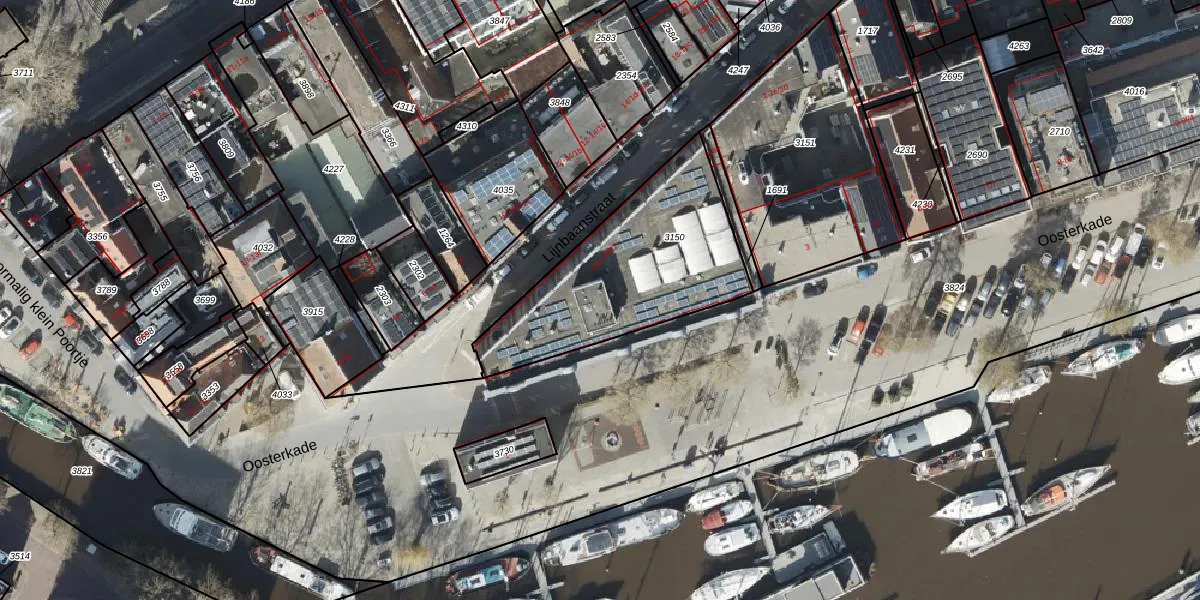 Het perceel waarop Oosterkade 2-c-5 staat heeft een oppervlakte van 784 m². Dit is een groot perceel. De perceeloppervlakte wordt geregistreerd door het Kadaster. Gedetailleerde informatie over de maten van dit perceel kunt u vinden in het rapport Kadastrale kaart met maatvoering van Oosterkade 2-c-5.