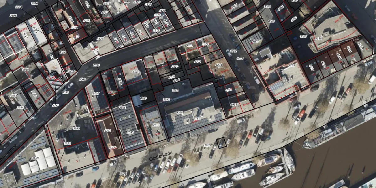 Het perceel waarop Oosterkade 9-e-6 staat heeft een oppervlakte van 757 m². Dit is een groot perceel. De perceeloppervlakte wordt geregistreerd door het Kadaster. Gedetailleerde informatie over de maten van dit perceel kunt u vinden in het rapport Kadastrale kaart met maatvoering van Oosterkade 9-e-6.